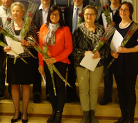 ![]() Moninaiset TUL100 teatterigaalassa (kuva: Carita Berg) | ![]() Palkitut naisemme Outi, Minna, Maire ja Eira |